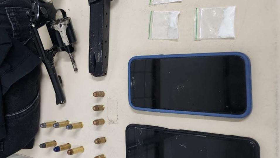 No deslocamento, a equipe interceptou um veículo que deixava a área. Na revista, encontrou com um dos ocupantes carregador de pistola calibre .380, munições e papelotes de substância análoga à cocaína. As diligências seguiram pelo terreno, onde os policiais localizaram outro suspeito portando um revólver calibre .38 e munições. O terceiro integrante também foi conduzido.